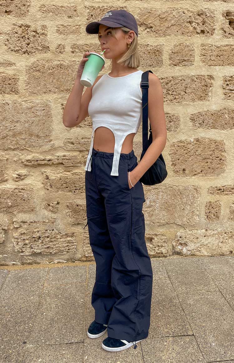 Y2K in these navy cargo pants. Perfect piece for an everyday street look. Style with a crop and sneakers for ultimate comfort and style. Be sure to pop on sunnies and a bag to complete this fit!